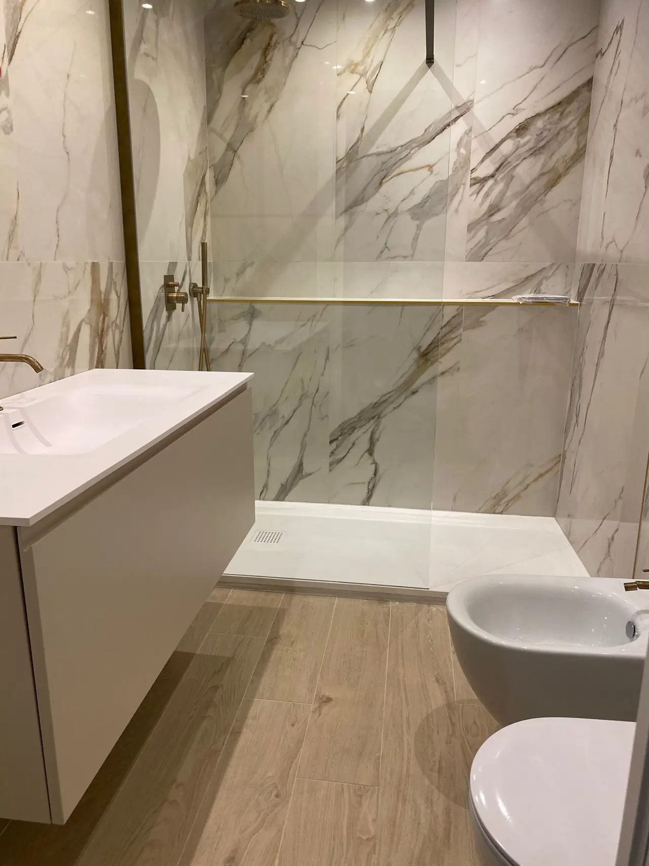 In questo progetto, come per quello di cui ti abbiamo raccontato nell’articolo: “Ristrutturare un locale commerciale con carattere”, la nostra fornitura ha riguardato tanto i materiali per la realizzazione dei due bagni, quanto la pavimentazione dell’intero appartamento.