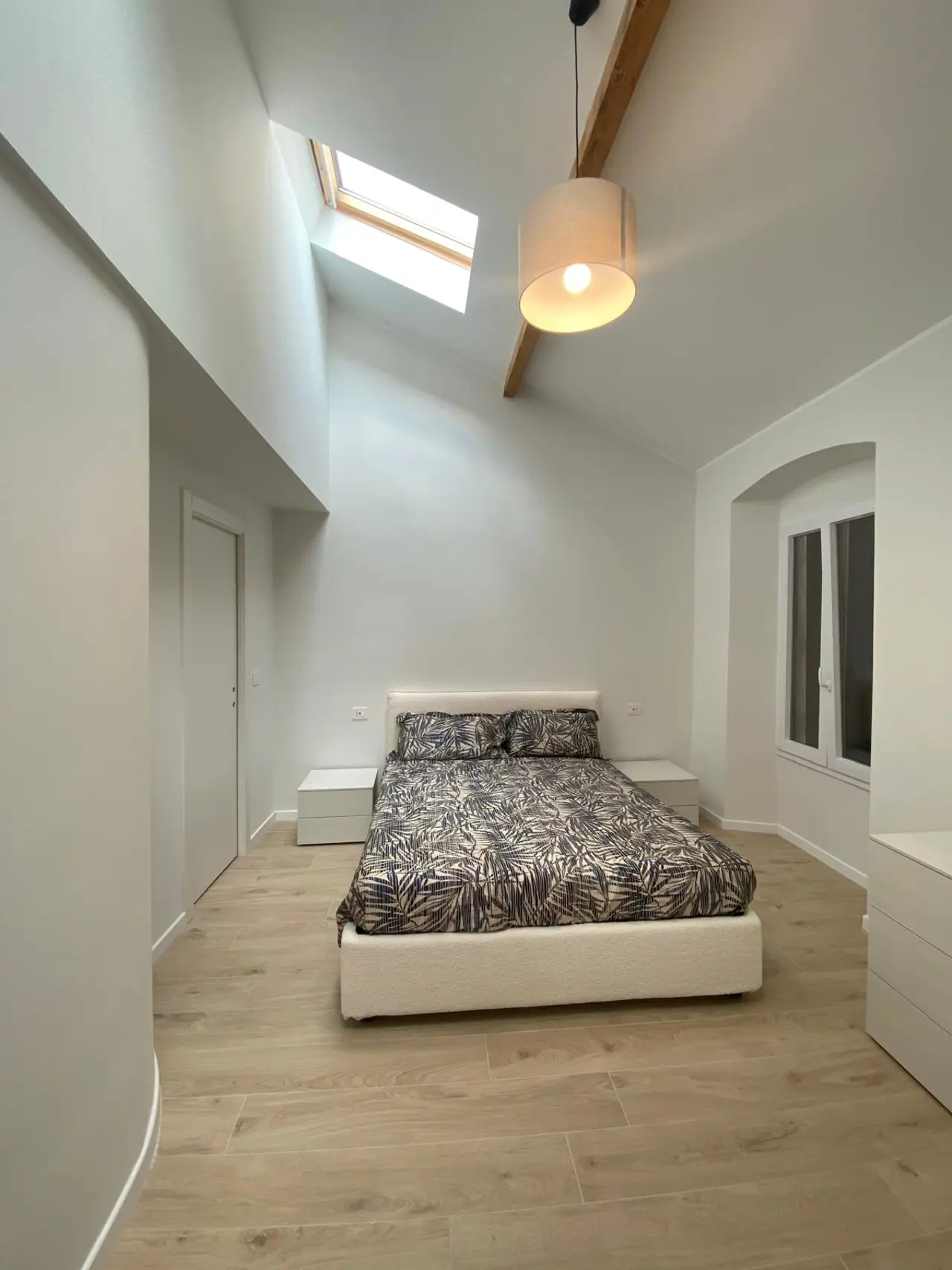 L’appartamento, in origine, versava in condizioni difficili: un’abitazione trascurata, con spazi frammentati e un progetto iniziale poco funzionale, che prevedeva stanzini angusti e più scale per accedere ai vari livelli.