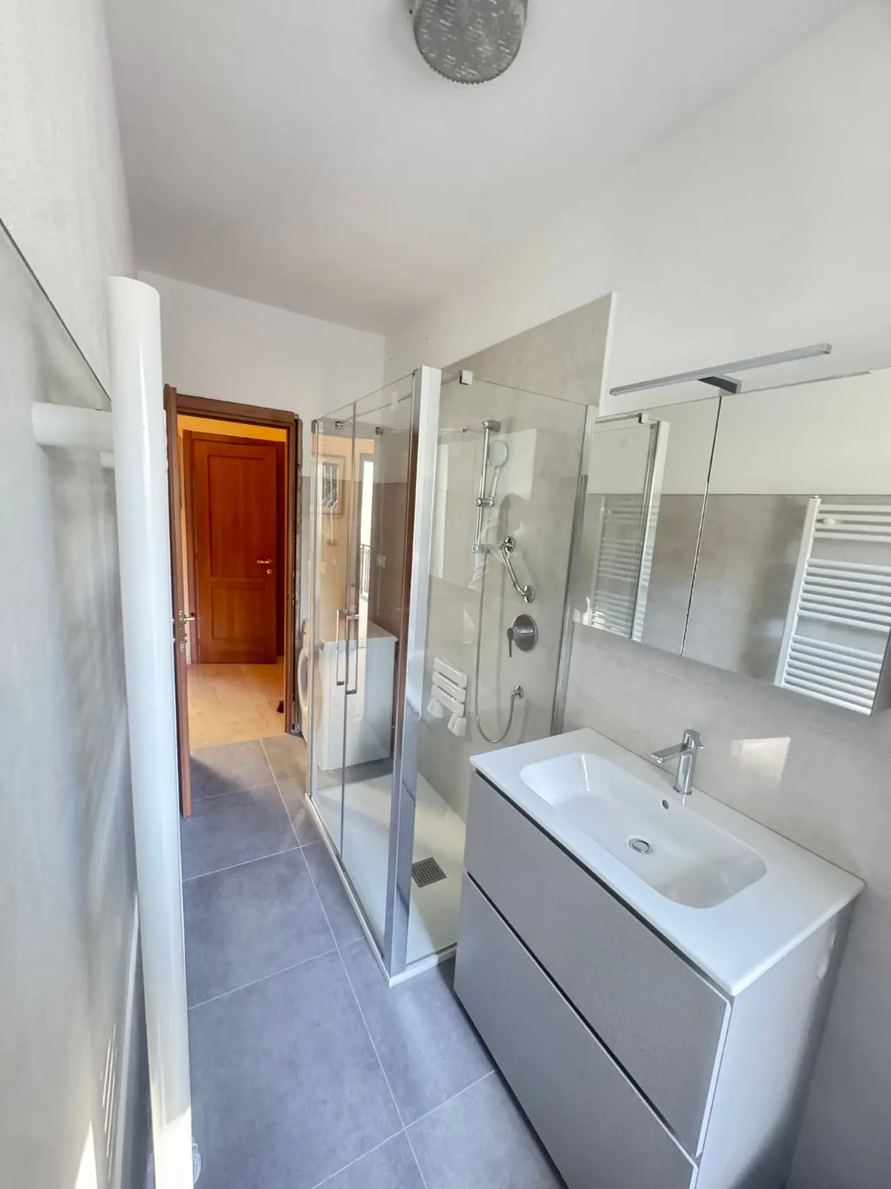 Il progetto è stato completato con l’installazione di un box doccia Tda e di uno scaldasalviette Deltacalor, per garantire massima efficienza anche sul piano termico e del benessere quotidiano.